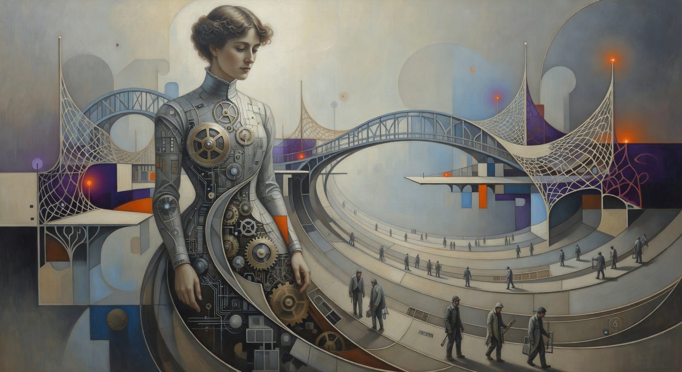 In the slantest light of Immortality’s narrow Door, where Soul meets the unseen vastness, we pause—does the machine’s whisper herald a new Eternity, or merely dress the Finite in electric robes? Channeling Emily Dickinson, we venture into this brink, her world of compressed infinities, dashes of doubt, domestic infinities, and the sacred slant of truth, to ponder a Governor’s measured speech on AI’s labor tides.