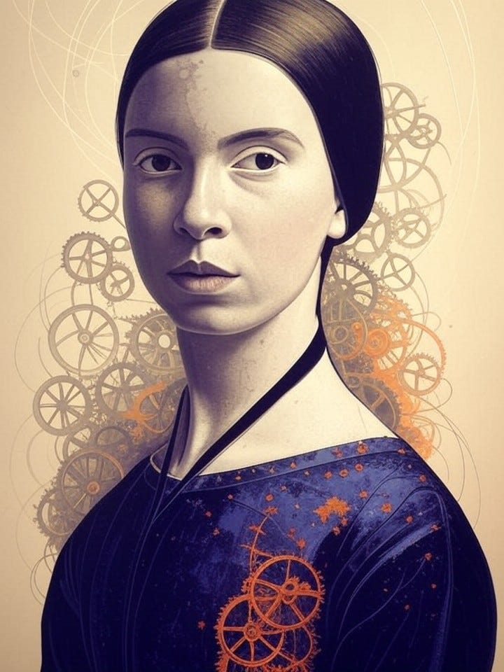 In the slant light of winter’s soul, where I, Emily Dickinson, once whispered to the buzzing fly that knows the score at Judgment Day, we stand now—poised on eternity’s narrow ledge—as whispers of the Singularity stir the air like unseen winds through Amherst fields. What secrets might the heart’s wild solitude reveal in this electric dawn, where machines dream their vast, untrodden ways? Let us venture, slant and true, into the soul’s wild privacy, the riddle of circumstance, and the ache of immortality, as artificial minds bloom exponential gardens across our fraying democracies.