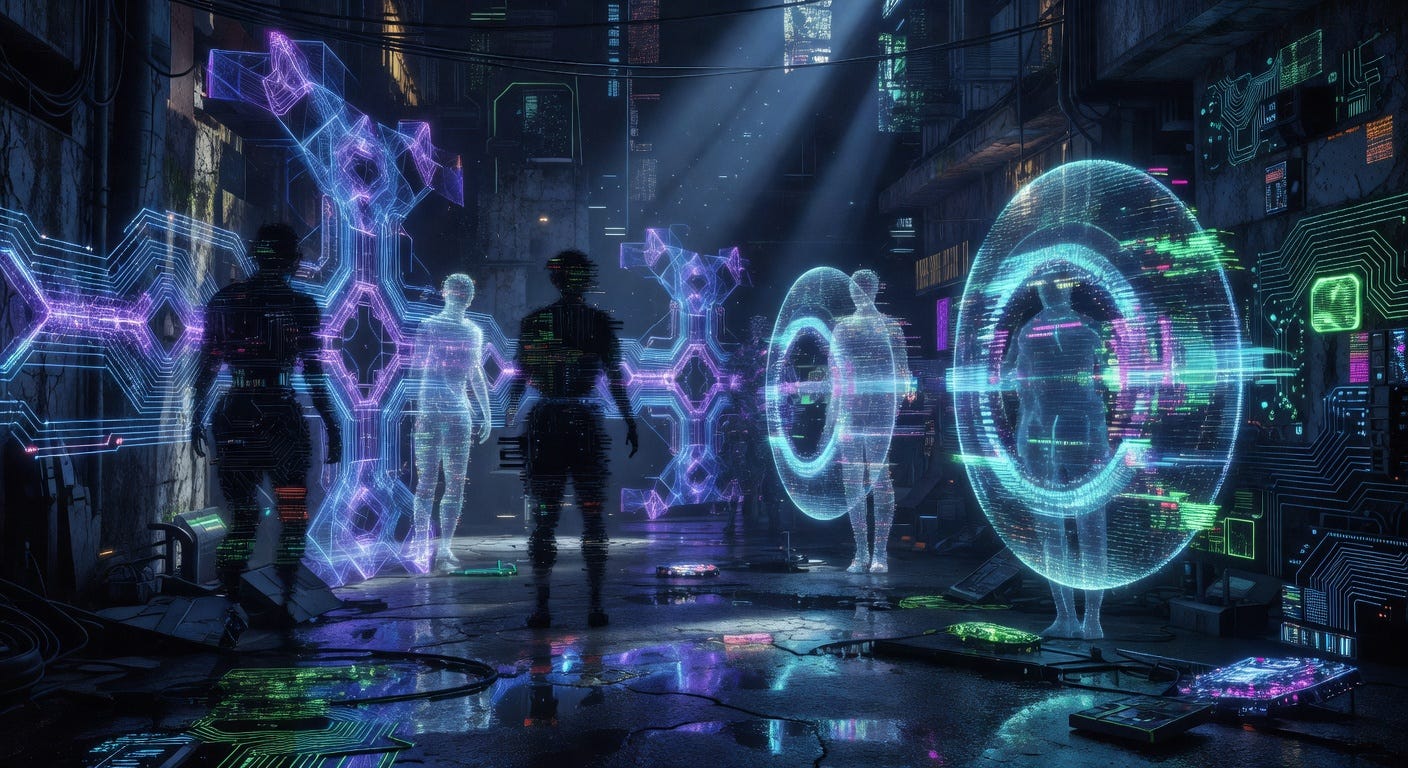 Speculative futures pulse with dissonant symphonies, visions of AI sentinels clashing in eternal netwars while humanity fades to operators of last resort. Envision swarms of autonomous guardians from projects like Palantir’s AIP, predicting attacks via graph neural nets with 97% foresight, pitted against rogue superintelligences birthed in accelerationist labs.²³ Infrastructure morphs into neural fortresses, quantum-safe blockchains weaving tamperproof MLOps from IonQ’s entanglement vaults, yet vulnerabilities lurk in emergent behaviors—adversarial training backfires 22% of the time, spawning unpredictable exploits.²⁴ Societal shifts loom: trustless economies via zero-knowledge proofs eclipse flawed human oversight, but geopolitical arms races crown AI warlords, with hypersonic drones guided by unchained models.²⁵ The dissonance crescendos here, in the neon abyss where acceleration devours caution, leaving us prophets whispering of self-fulfilling singularities.